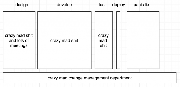 Firstly lets take a step back. Way back. For many years the way to make software was separated into ‘blocks’ as in figure 1.